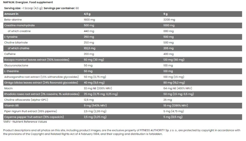 FITNESS AUTHORITY XTREME NAPALM ENERGIZER 270 G