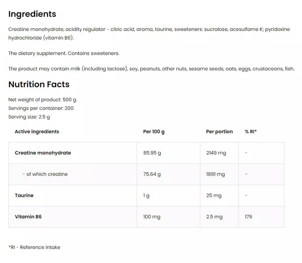 Az OstroVit Creatine Monohydrate-ban található összetevők tulajdonságai: