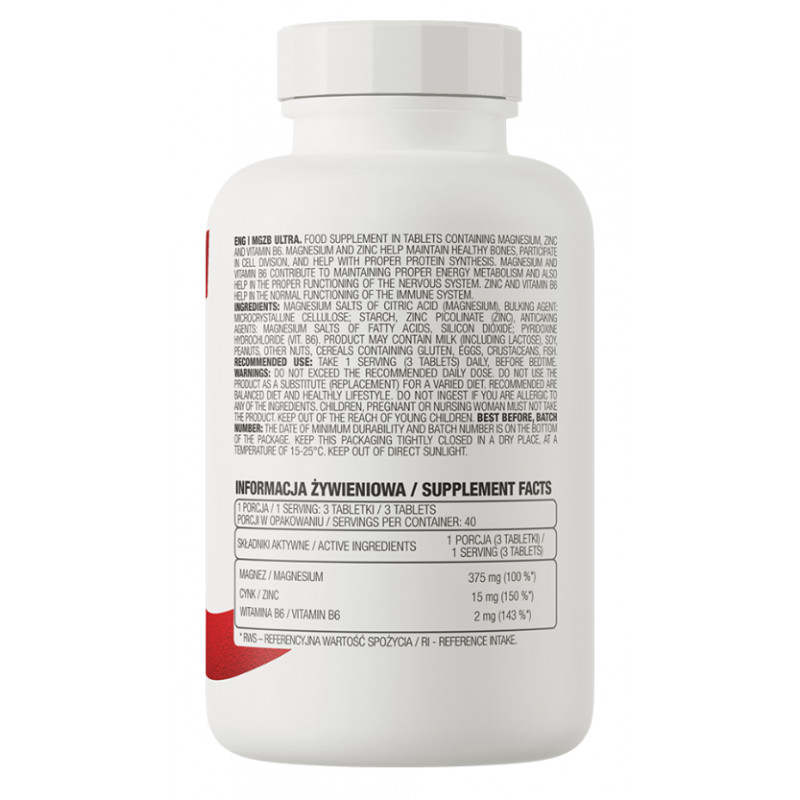 Az OstroVit MgZB Ultra egy kiváló minőségű étrend-kiegészítő, amely három összetevőből álló készletet biztosít - magnéziumot, cinket és B6-vitamint - magas biológiai hasznosulású formában. Könnyen lenyelhető tabletták formájában kapható készítmény, sportolók és olyan emberek számára, akik értékes vegyületekkel szeretnék kiegészíteni étrendjüket.