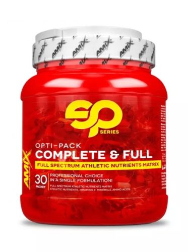 180 tabletta (30 csomag). Az Opti-Pack Complete & Full valóban „univerzális” táplálékkiegészítő, amelyet kifejezetten azért fejlesztettek ki, hogy a testnek a legszükségesebb tápanyagokat adja a magas állóképességű sportolók szigorú edzése során. Opti-Pack Complete & Full: a sportos tápanyagok, aminosavak, vitaminok és ásványi anyagok hihetetlen kombinációja egyetlen készítményben! Javasolt adagolás: 12 tablettát (2 csomag) vegyen be naponta bő vízzel. Adagolás: vegye be együtt a két csomagot, vagy reggel 1 csomagot (6 tabletta), délután 1 csomagot (6 tabletta). A legjobb eredmény érdekében a kemény edzésnapokon ki ne hagyd.  Allergén figyelmeztetés: tojást, glutént, kagylót, diót és földimogyorót felhasználó üzemben készül. Figyelmeztetés: Ha terhes vagy szoptat, kérje egészségügyi szakember tanácsát a termék használata előtt. A terméket nem gyermekek számára tervezték. Gyerekektől távol tartandó. Ne lépje túl az ajánlott napi adagot! Ennek az étrend-kiegészítőnek a fogyasztása előtt javasolt konzultálnia orvosával. Legfeljebb 25 ° C hőmérsékleten, száraz, hűvös helyen, napfénytől távol tárolandó. A terméket ne használd a változatos étrend helyettesítésére. A gyártó és a forgalmazó nem felel a nem rendeltetésszerű használatból vagy tárolásból eredő károkért.