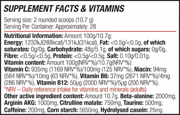 MI IS AZ A BLADE SPORT NO BEAST PRE-WORKOUT?   BLADE SPORT NO BEAST PRE-WORKOUT új, extra koncentrált edzés előtti pumpa, mely lehetővé teszi, hogy megtapasztald milyen SZÖRNYNEK lenni!   Magas intenzív edzés élményt biztosít!    A PRÉMIUM alapanyagok tudományosan megtervezett mátrixa maximális lendületet ad az erősítő és az állóképességi sportok szerelmeseinek!    BLADE SPORT NO BEAST PRE-WORKOUT hatóanyagai valóban kirobbanó keveréket biztosítanak az edzéséhez!   A Béta-alanin savasodás gátló, az L-arginin és a L-Citrulin mátrixa nitrogén-oxid növelő és értágító hatása lehetővé teszi a tökéletes izomműködést!   BLADE SPORT NO BEAST PRE-WORKOUT óriási edzés élményt ad ezáltal megalkuvás nélkül a legnagyobb súlyokat mozgathatod a Gym-ben!   Légy te a király!   Annak érdekében, hogy egy jó adag energiád legyen az edzéseid során a BLADE SPORT NO BEAST PRE-WORKOUT-ba belecsempésztünk 200mg koffeint is.   Ez körülbelül 2,5 adag presszókávé koffeintartalmanak felel meg.   BLADE SPORT NO BEAST PRE-WORKOUT -ban lévő taurin, antioxidáns hatással is bír.   A Taurin szerepet játszik a sejtmembránokon keresztüli kálciumáramlás szabályozásában, egyes szövetek, mint a szívizom normális működésében, az inzulinhoz hasonlóan elősegíti a glükóz sejtekbe áramlását ezáltal nő a fizikai teljesítőképesség, csökken a vércukorszint.   A humán szervezetben stabilizálja a különféle neurotranszmitterek szintjét.    BLADE SPORT NO BEAST PRE-WORKOUT terméket azoknak a sportolóknak alkottuk meg, akik nagyra törő célokkal rendelkeznek és meg akarják adni maguknak azt az edzés előtti készítményt, amivel céljaikat el is tudják érni.   BLADE SPORT NO BEAST PRE-WORKOUT tartalmaz minden összetevőt azért, hogy az izmaid erejét a maximális szintre emelje!   Ha nem tűröd a kompromisszumokat az edzés alatt akkor ez a készítmény neked készült!   Beta-alanine, Arginine AKG, citrulline malate Edzés előtti Stimulánsok a termékekben: niacin, caffeine, taurine Vitamin C, vitamin B6, vitamin B12 Kiváló ízek
