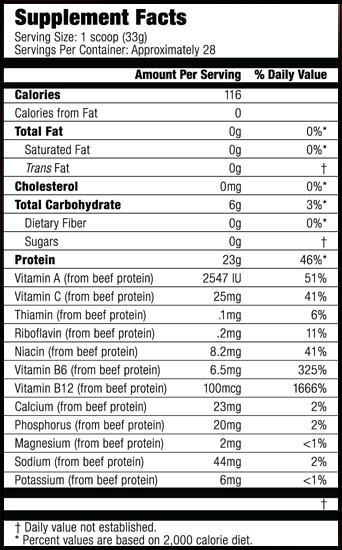 A világ első marhahús protein izolátuma 350%-al nagyobb koncentrációjú, mint a marhasült és nagyobb koncentrációjú a tejsavónál. Egy új, fejlett kivonási, tisztítási, hidrolizáló és izoláló technológia használatával a CARNIVOR Biológiailag Megtervezett Marhahús Protein Izolátum a marhahús izomépítő erejét adja magasabb aminosav szintekkel, mint az összes többi proteinforrás, amit a kiegészítő-ipar hasznán: tejsavó, szója, tej és tojás. A CARNIVOR Marhahús Protein Izolátum ráadásul 350%-kal nagyobb koncentrációban tartalmaz izomépítő aminosavakat, mint a legjobb bélszínszelet. És nincs benne sem zsír, sem koleszterin. Az izmok építőanyaga a fehérje. Fehérje nélkül nincs izomépítés. Amennyiben nem veszel magadhoz elegendő mennyiségű és minőségű fehérjét, az izmaid nem fognak fejlődni. Hiszen nincs az az építkezés, ami haladna építőanyag hiányában. Tégla nélkül nem tudsz falazni. Ezt nem nehéz belátni.