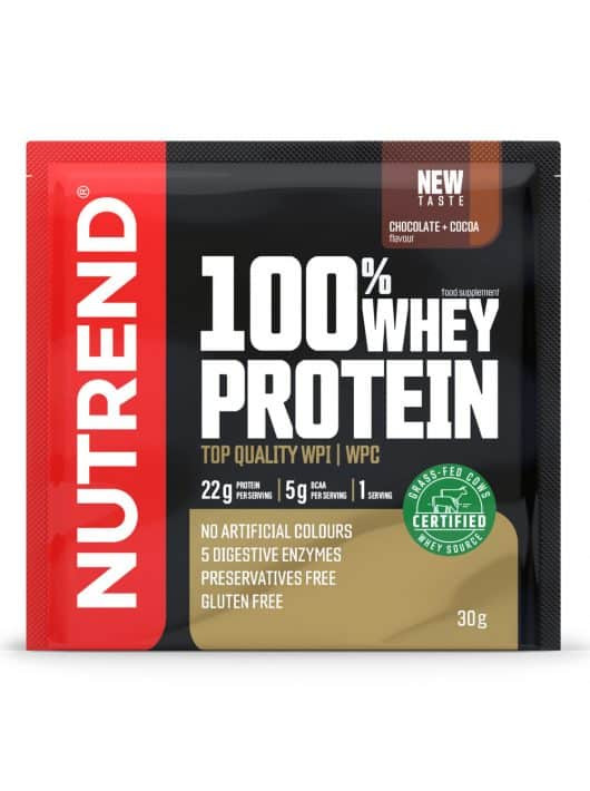 A Nutrend 100% Whey Protein 100% tejsavófehérje előállításához használt új és egyedülálló technológiai folyamata hozzájárult az ízek teljesen új felfedezéséhez. A legjobb minőségű alapanyagokból 16 egyedi ízben választhatók, amelyek megdöbbentően hasonlítanak az eredetihez. Ezt meg kell kóstolni! Nutrend 100% whey protein A Nutrend 100% Whey Protein 100%-os tisztaságú kevert tejsavó fehérje izolátum (WPI) és koncentrátum (WPC) legtisztább formájából készült, amely a Cross-Flow Microfiltration (CFM) gyártótól származik. A fehérje forrás a minőség és hatékonyság legfontosabb tényezője. A CFM gyártási technológiának köszönhetően a fehérjék megőrzik minden biológiai értéküket (abszorpciós rátát) az edzés maximális hatékonysága érdekében. A Nutrend 100% Whey Protein magas biológiai értéke mellett, könnyen és gyorsan felszívódó készítmény, mely minőségi fehérjével látja el a szervezetet és azt anabolikus (izomtömeg építő) állapotba hozza. A szénhidrátokkal és zsírokkal ellentétben a szervezet a fehérjéket nem képes tárolni, ezért pótlásuknak folyamatosnak kell lennie. Ezért szükséges a rendszeres, következetes 2,5-3 óránkénti étkezés. A kiegészítők piacán a fehérjeforrások közül verhetetlen a tejsavó fehérje. Töretlen népszerűségét a gyors felszívódásának, tökéletes tulajdonságainak és kitűnő ízének köszönheti. A Nutrend 100% Whey Protein fehérje minden egyes 100 grammja közel 55g tejsavófehérjéből áll. Nehéz fizikai munka (az edzés is ilyen) megnöveli a szervezet fehérjeszükségletét, katabolikus állapotba kerül, amit testsúlykilogrammonként 1,5-3 g fehérjével pótolunk. Diéta alatt és izomtömegnövelésnél elengedhetetlen a bevitele. Nutrend grass-fed minősítésGRASS-FED MINŐSÍTÉS - A Nutrend 100% Whey Protein tejsavófehérje előállításához használt tejsavót olyan szarvasmarha tejéből nyerik, amelynek étrendje legalább 90% friss fűből vagy takarmányból áll, és akiknek a nyílt legelőkön való tartása magától értetődő. A Nutrend 100% Whey Protein fehérje nagyon jól oldódik vízben vagy sovány tejben, a fehérje szükségletenek megfelelően. A Nutrend 100% Whey Protein tejsavó fehérje fogyasztásának számtalan előnye van: harcol a rák ellen, pontosabban az oxidativ stressz ellen, mely kivédi a szabadgyökök támadásait. Kontrollálja a vércukorszintet. A fehérjék lassítják a glükóz felszívódását és a jóllakottság érzését keltik. Hozzájárul a növekedés folyamatához és betegségek megelőzéséhez. Fokozza a száraz izomtömeget és az erőt. A Nutrend 100% Whey Protein: