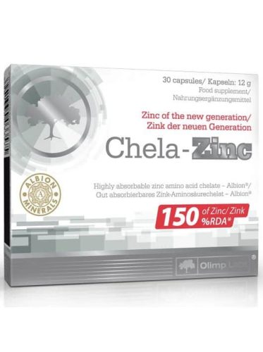 Az Olimp Labs Chela Zinc fejlett, szerves formában tartalmaz cinket, mely elsõsorban a hormonjaink termelõdéséhez a legfontosabb, de segít beforrasztani sebeinket, és leküzdeni a bakteriális és vírusos megbetegedéseket!