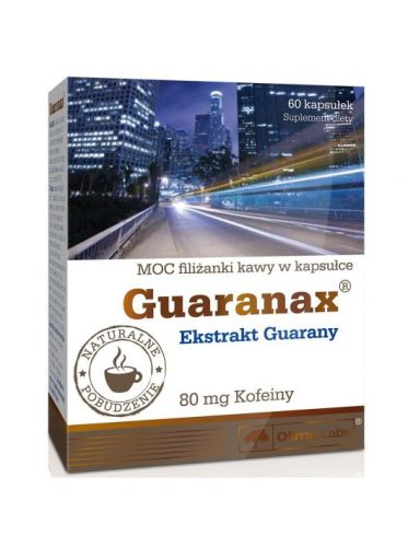 Egy csésze kávé kapszula! Az Olimp Guaranax kapszula nagy tisztaságban tartalmaz gauarana kivonatot, mely hosszan és erőteljesen képes energizálni a kávéban is található koffein – sokak számára nehezen tolerálható – intenzív mellékhatásai nélkül. Kiváló és hosszan ható szellemi és fizikai frissítő! A dzsungelben nem szabad hibázni, a vadon természetes törvényei sosem engedték! A guarana Amazónia dzsungeleinek természetes kávéja, melynek áldásos hatásait már a betondzsungel forgatagában is élvezhetjük! Guarana (Paulinia cupana) egy dél-amerikai cserje, növény, amelynek mag magas természetes koffein tartalom rendelkezik, amelyet jól tolerál az emberi szervezet. A növény majdnem négyszer több koffeint tartalmaz, mint a kávé. Olimp - GuaranaA guarana egyfajta folyamatos felszívódású koffein forrás, mivel a koffein tartalma a növény speciális szerkezetébe ágyazódva lassan és egyenletesen jut a szervezetbe. Pontosan emiatt nem okoz emésztési problémákat, illetve a koffein esetleges agresszív tüneteit: szapora szívverést, hirtelen magas vérnyomást, vagy idegességet. Sőt, a dopamin termelésének támogatásával hangulatjavító hatását is élvezhetjük! Sokan megtapasztalhattuk a nagy mennyiségű kávé fogyasztásából eredő kellemetlen mellékhatásokat: hirtelen az egekbe szökik a vérnyomásunk és szinte ki akar ugrani a szívünk a helyéről. Nem segíti a munkánkat a remegő kéz, vagy a gyomorgörcs és a gyomorégés sem – különösen érvényes ez a koffeinre érzékenyebb személyekre. Ezt segít elkerülni a guarana, mivel lassabb felszívódása miatt nem hirtelen szívódik fel a gyomorban, hanem lassabban, fokozatosan a bélrendszerben. Így testi és szellemi élénkítő hatása akár 5-6 órán keresztül tarthat, de lényegesen kíméletesebben, mint a kávé esetében!  Mindezt úgy, hogy a kávéban is meglévő koffeinhez képest töredék mértékben terheli a szívet és az érrendszert! Szintén pozitív hatása, hogy a testnek magasabb energiaszintet biztosít, méghozzá a testzsír felhasználásának fokozásával. Magyarán a termelődő többletenergiát a felesleges zsírpárnáink mobilizálásából is nyeri, ezáltal egyfajta természetes „zsírégetőként” funkcionál. Emellett étvágycsökkentő hatása miatt önkéntelenül csökkentjük a kalóriabevitelt, tehát a fogyókúrás diéta mindkét alapfeltételét támogatja. Egyben javítja az anyagcserét is, de a kávéval ellentétben nem jelentkezik a hirtelen, görcsös érzés! Olimp guarana Az Olimp Guaranax minden egyes kapszulája egy jó erős kávénak megfelelő mennyiségű koffeint tartalmaz hosszan ható és problémamentesen hasznosuló formában. Különösen ajánlható erőt és kitartást igénylő sportágakhoz (nagyobb időtartamú intenzív súlyzós, vagy cardio edzéshez, kerékpározáshoz, futáshoz, vagy küzdősportokhoz), hosszú-monoton, akár éjszakai szellemi munkához, vagy a fogyókúrás diéta támogatásához. Kiszerelés: