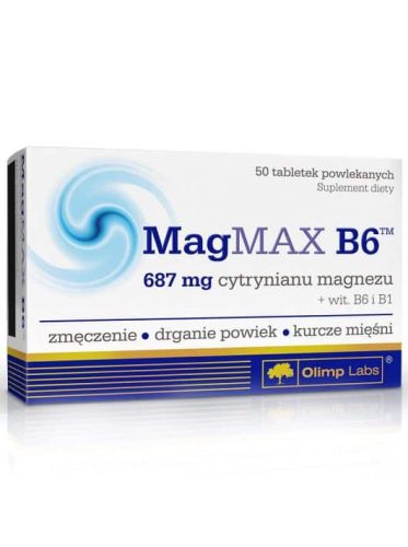 OLIMP MagMAX B6™ Magas magnézium tartalom, 687mg magnézium-citrát egy tablettában, B6- és B1-vitaminok hozzáadásával.