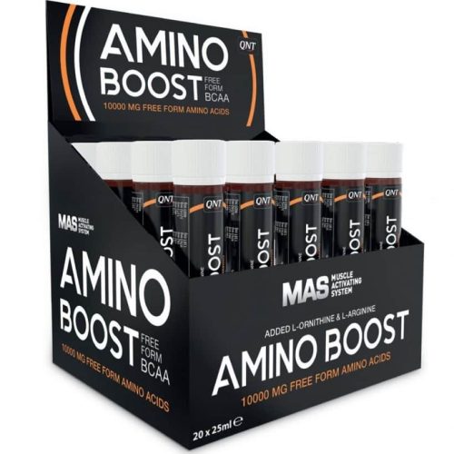 Az izmok legtisztább formája! A QNT Amino Boost  minden egyes ampullája 10.000 mg színtiszta izomépítő aminosavat tartalmaz! Nagy koncentrációban foglal magába, L-ORNITINE-et és L-Argininet. Segítség az izomtömeg fejlesztésében és fenntartásában. Az aminosavak a fehérjék építőkövei, a fehérjék pedig az izmaink alkotóelemei. Ha igazán tiszta, zsírmentes izomzatot akarunk fejleszteni, akkor érdemes egészen az alapokig lenyúlni, hogy a lehető legkoncentráltabb formában adjuk meg az izmainknak azt a lehetőséget, hogy egy alapos kínzás után a lehető leggyorsabban megkaphassák a nekik járó jogos jussukat! A normál táplálkozás ugyan mindennek az alapja, de egy kőkemény edzés nyilván túlmutat azokon a dolgokon, amire a természet tartalékai elegendőek lennének – ezért fontos a fehérjebevitelt olyan színtiszta hatóanyagokkal kiegészíteni, amiket: