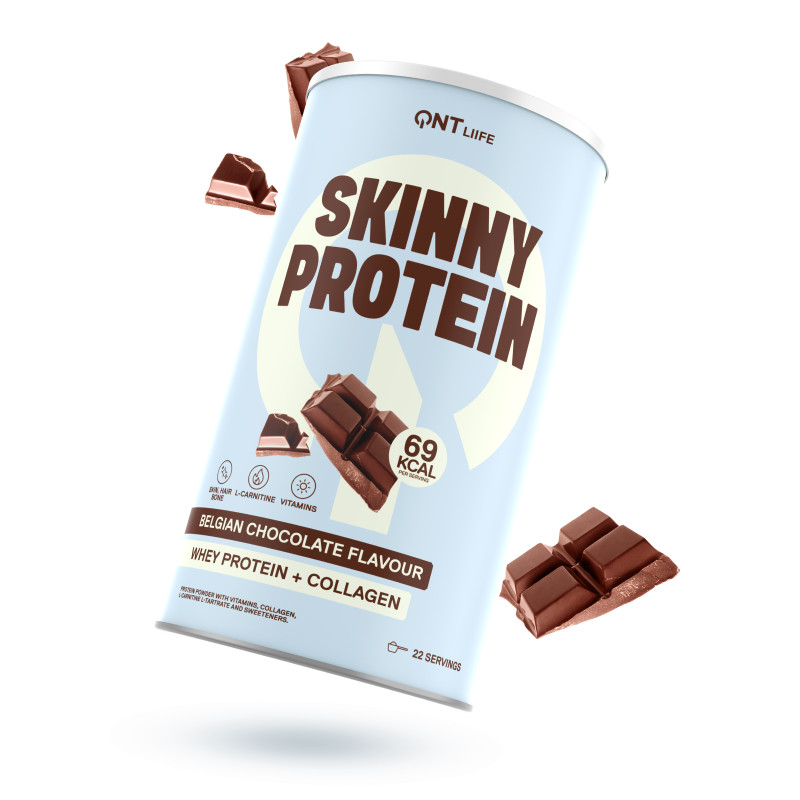 A QNT Easy Body Skinny Collagen Protein adagonként csak 66 kcal tartaklmaz. Biztosítja az egészséges és kiegyensúlyozott étrend támogatásához szükséges tápanyagokat a teljesítmény és a fogyás növelése érdekében, zsír és szénhidrát felesleg nélkül. A magas fehérje tartalma elősegítse az izmok fenntartását és helyreállítását. A QNT Easy Body Skinny Collagen Protein három finom ízben kapható - belga csokoládé, jeges kávé és vanília. Ajánlott minden aktív ember számára, legyen kezdőnek vagy profi sportoló, aki fogyni vagy gyönyörű bőrt szeretne, miközben megőrzi izomzatát és gondozza testét. A nap minden szakában elkíséri Önt, hogy természetes és ízletes tápanyagellátást biztosítson testének.   Ajánlott használat:Keverjen össze 1 adag 20 g terméket 250 ml vízben vagy tejben. Ne lépje túl a napia djánlott adagot. Összetétel: Tejfehérjék (tej, szója-lecitint tartal): tejsavófehérje-koncentrátum és tejsavófehérje-izolátum, kakaópor (Theobroma cacao) 6% (emulziós szójalecitin), kollagén, L-karnitin L-tartarát, aroma, sűrítők: E466/E414, édesítőszer: E955, B5-vitamin (Ca-D-pantotenát), B12-vitamin (metilkobalamin), B6-vitamin (piridoxin-HCL), B2-vitamin (riboflavin). Allergén információk: Tartalmaz tejet, szóját.